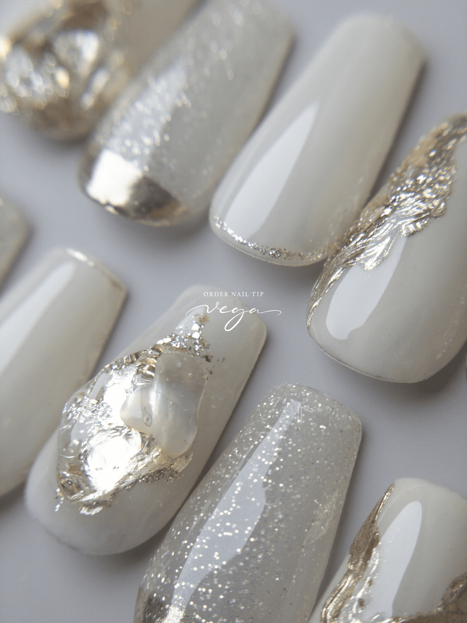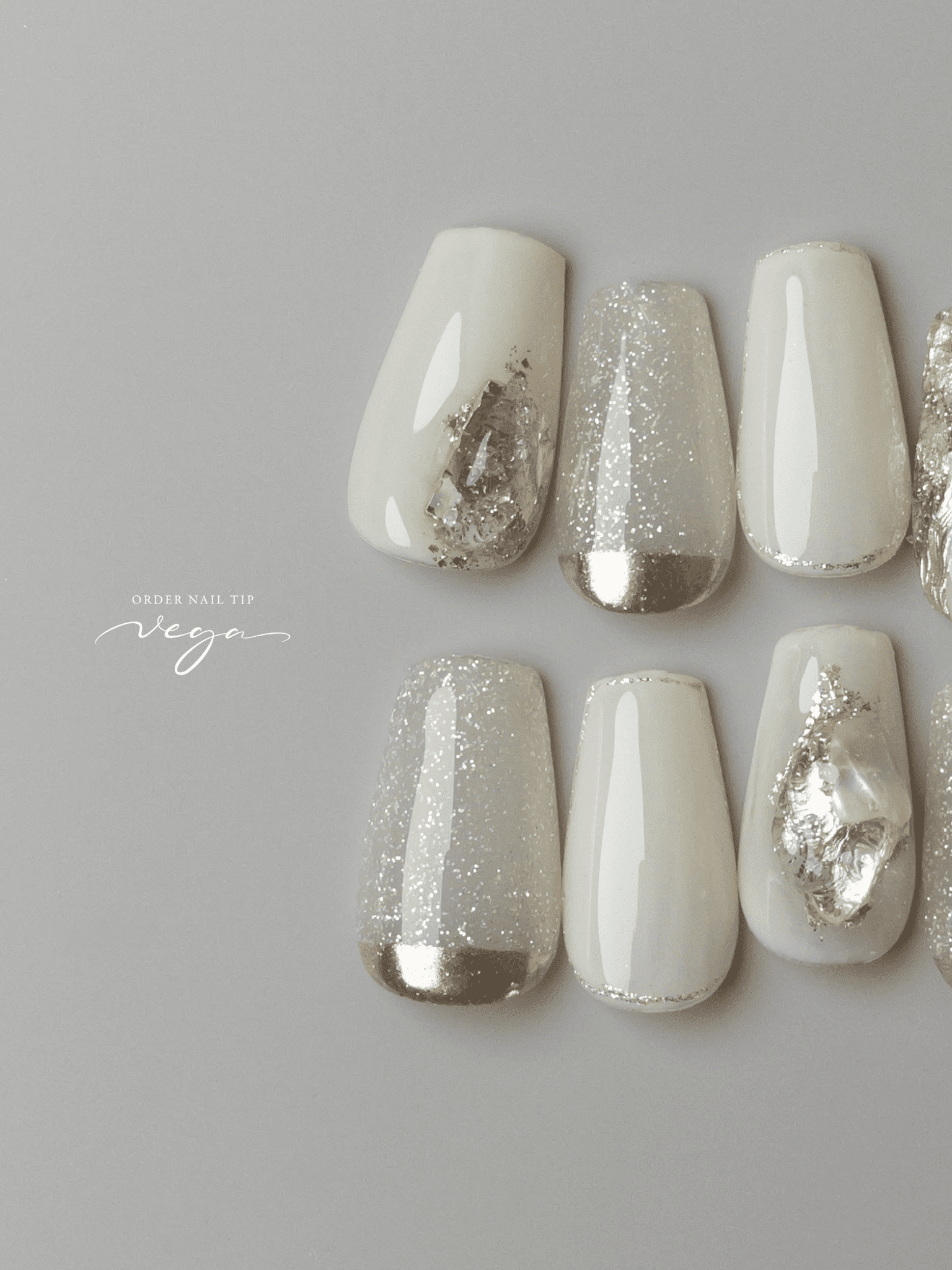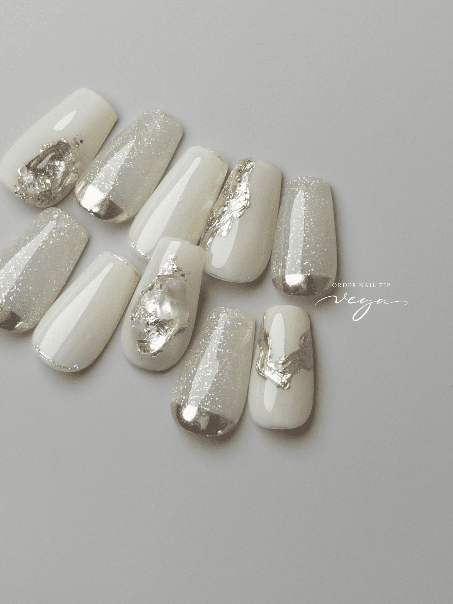 ホワイトのラメに見える部分はフラッシュネイルといって