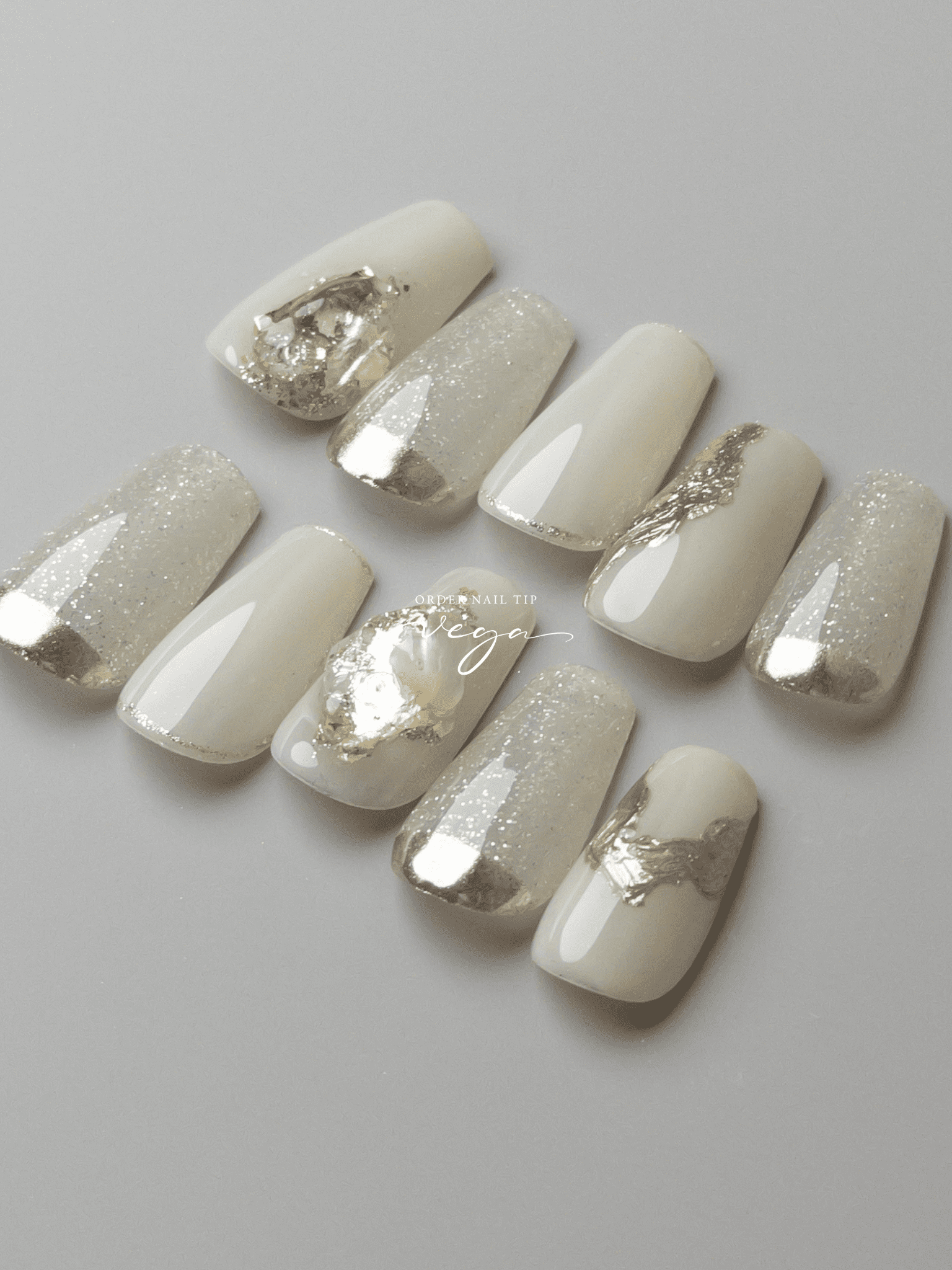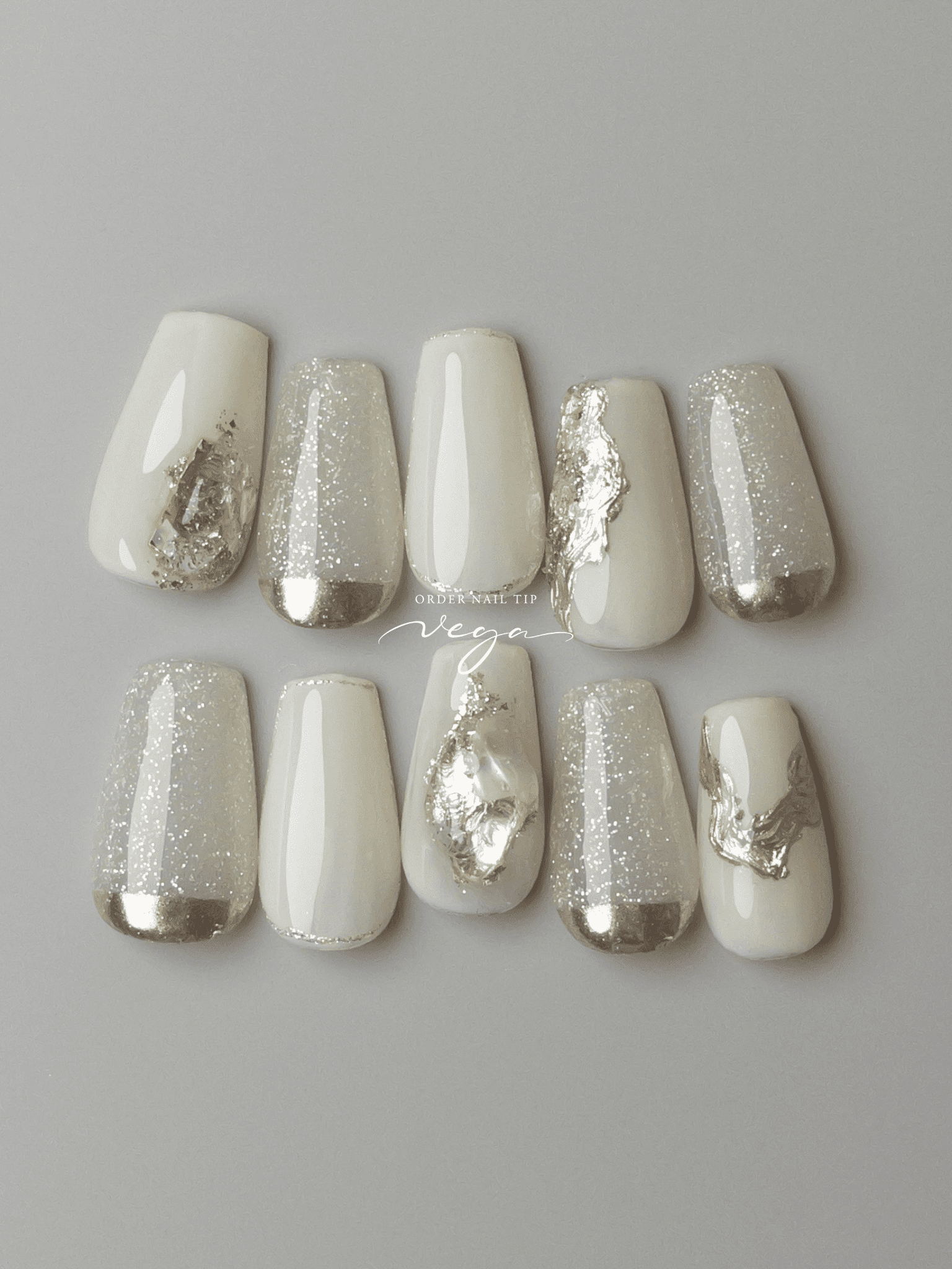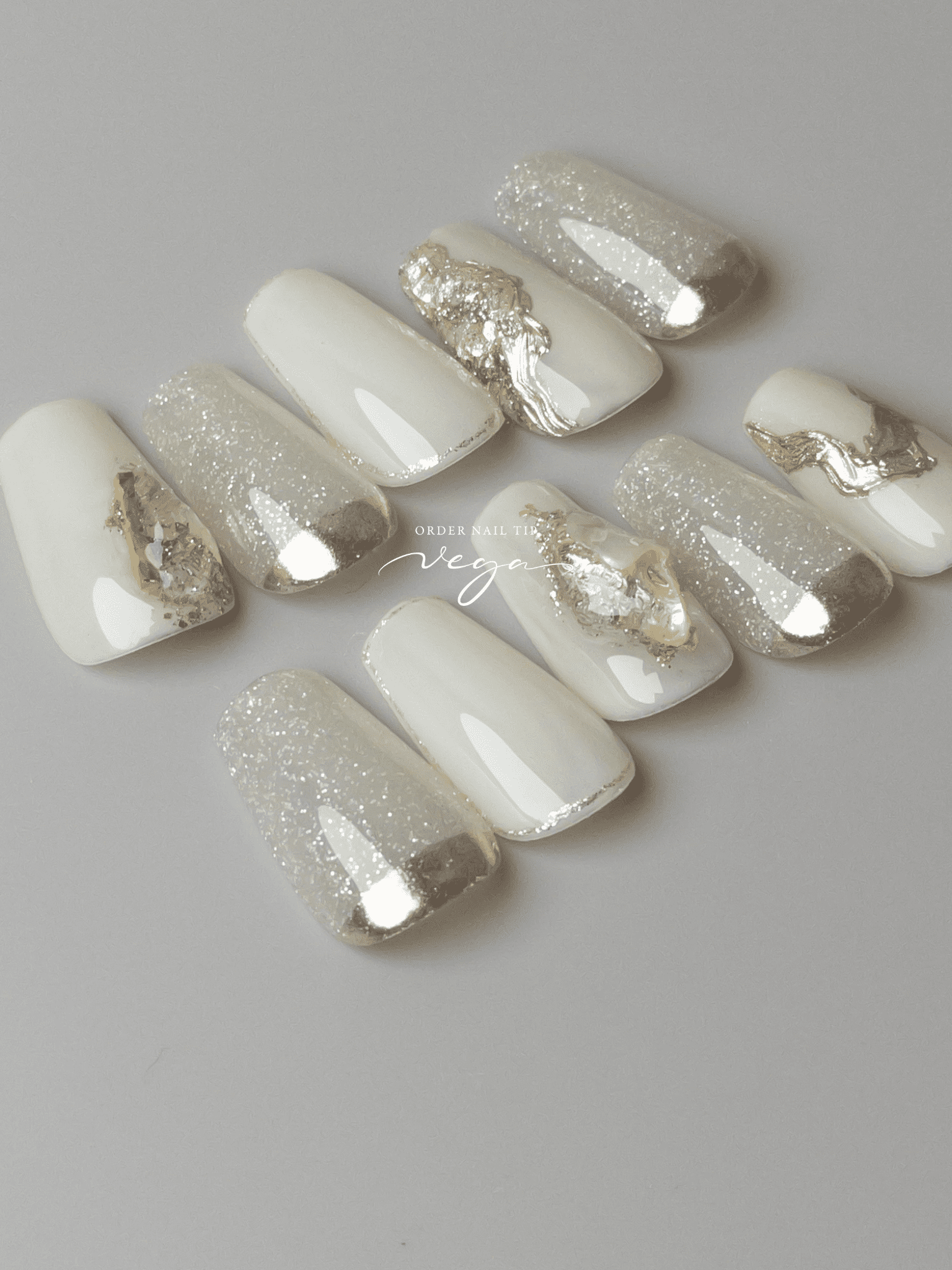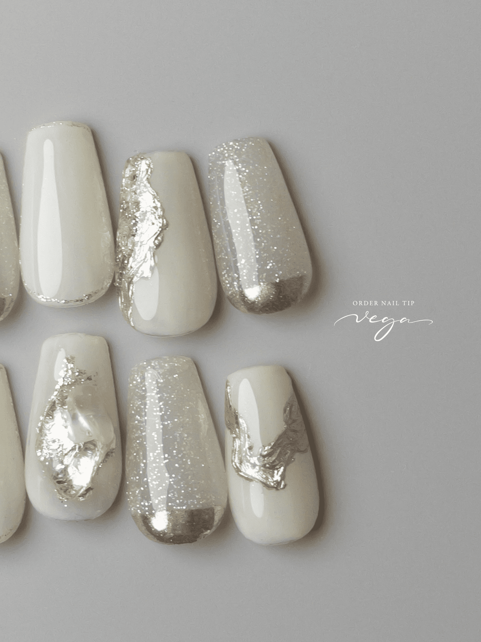 ホワイトのラメに見える部分はフラッシュネイルといって