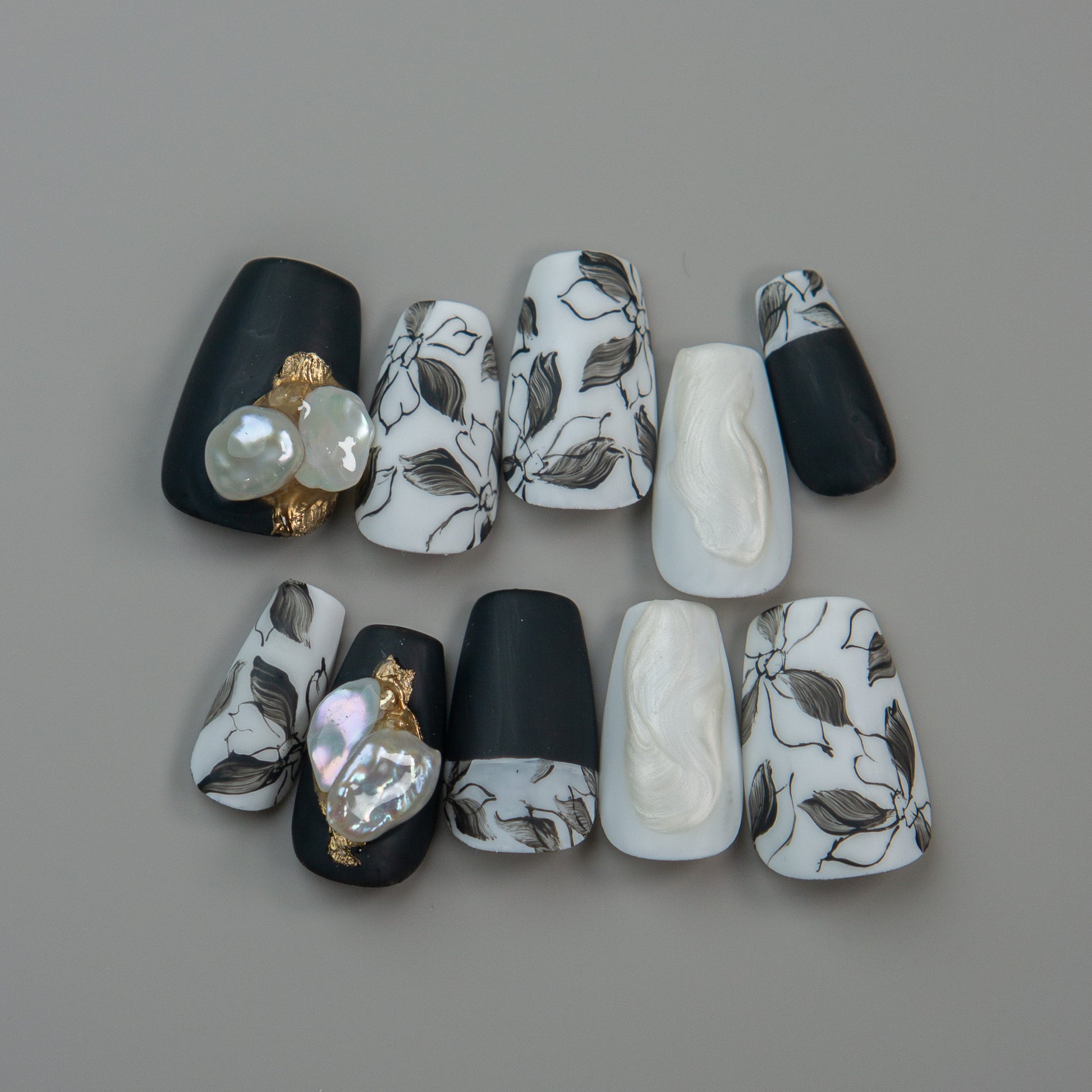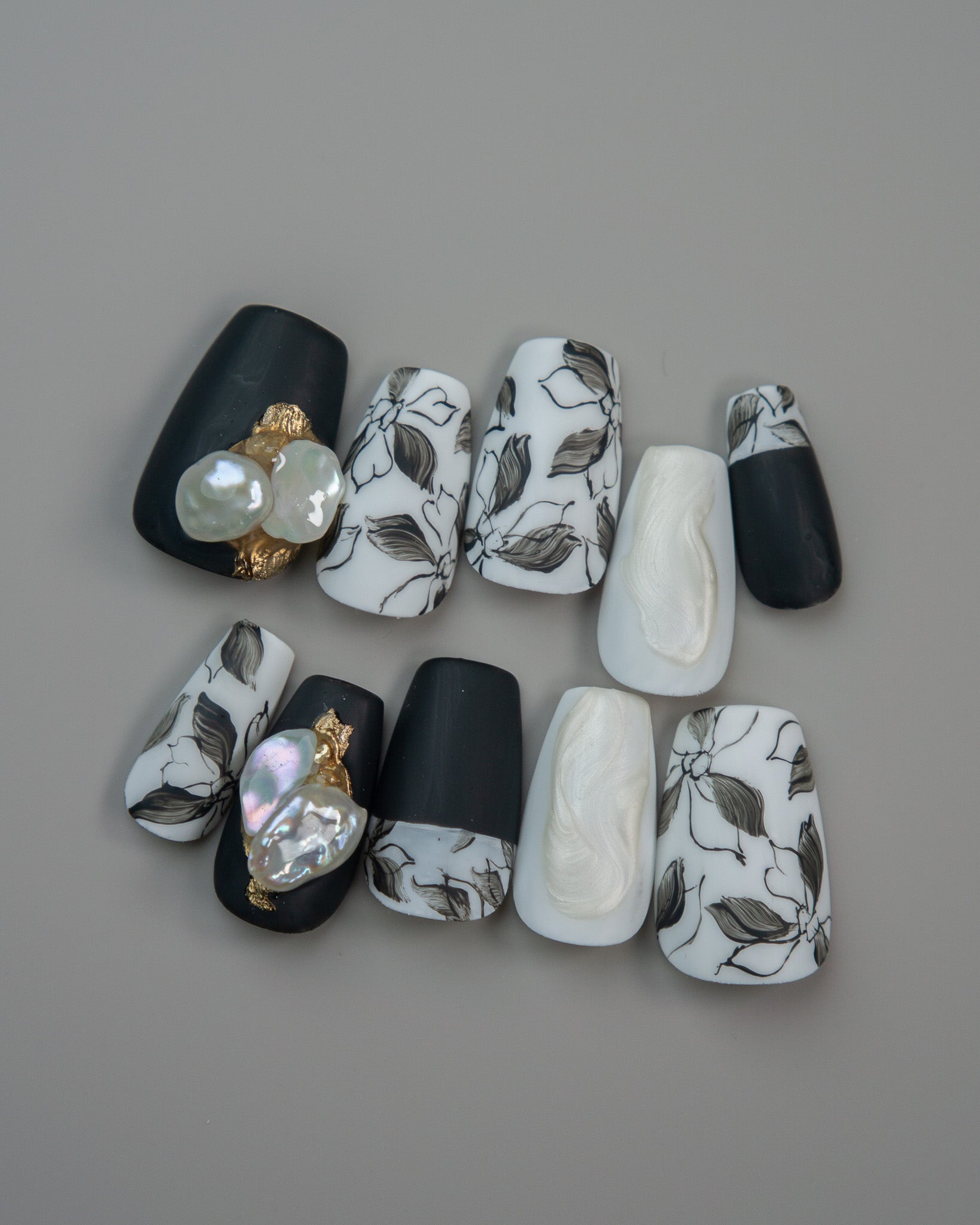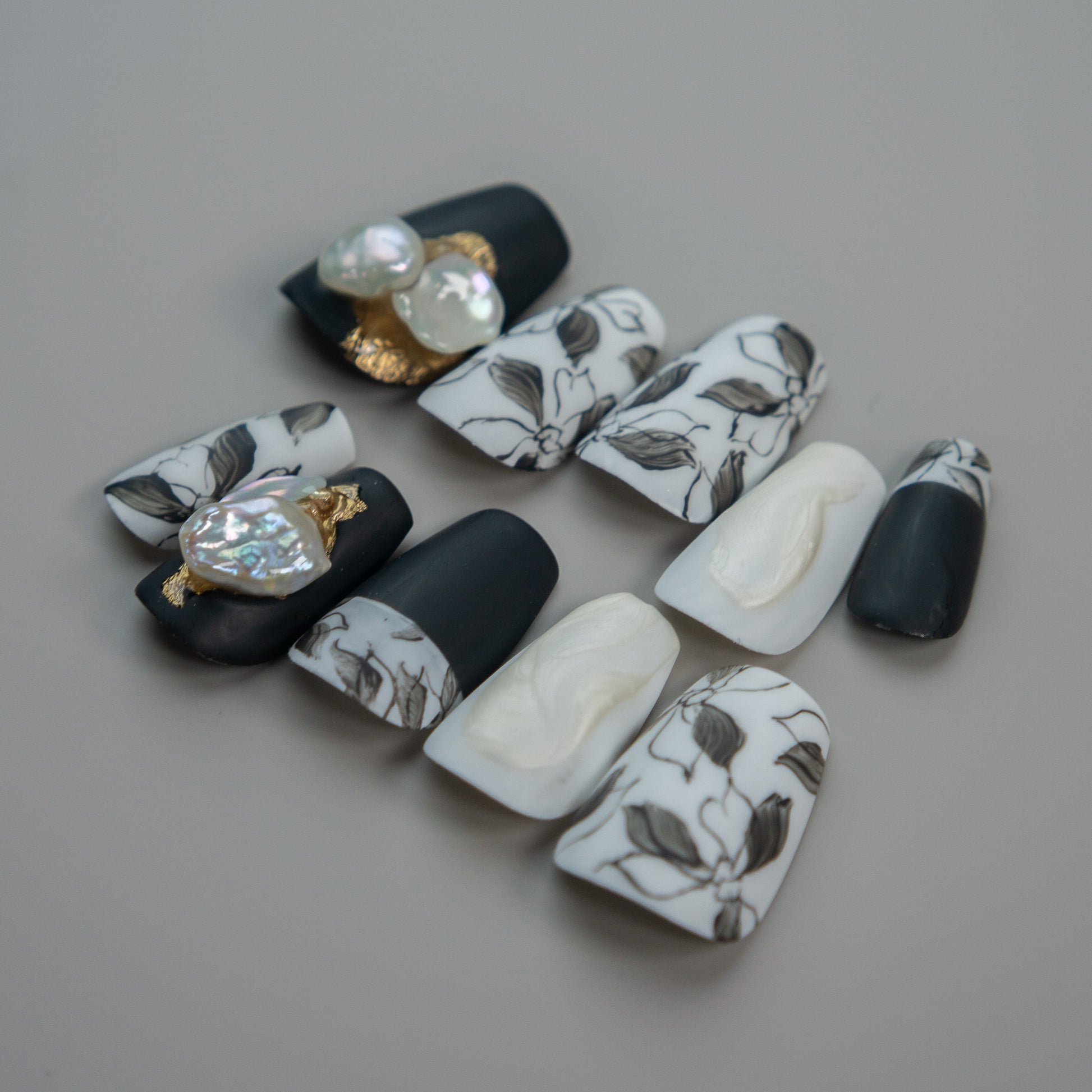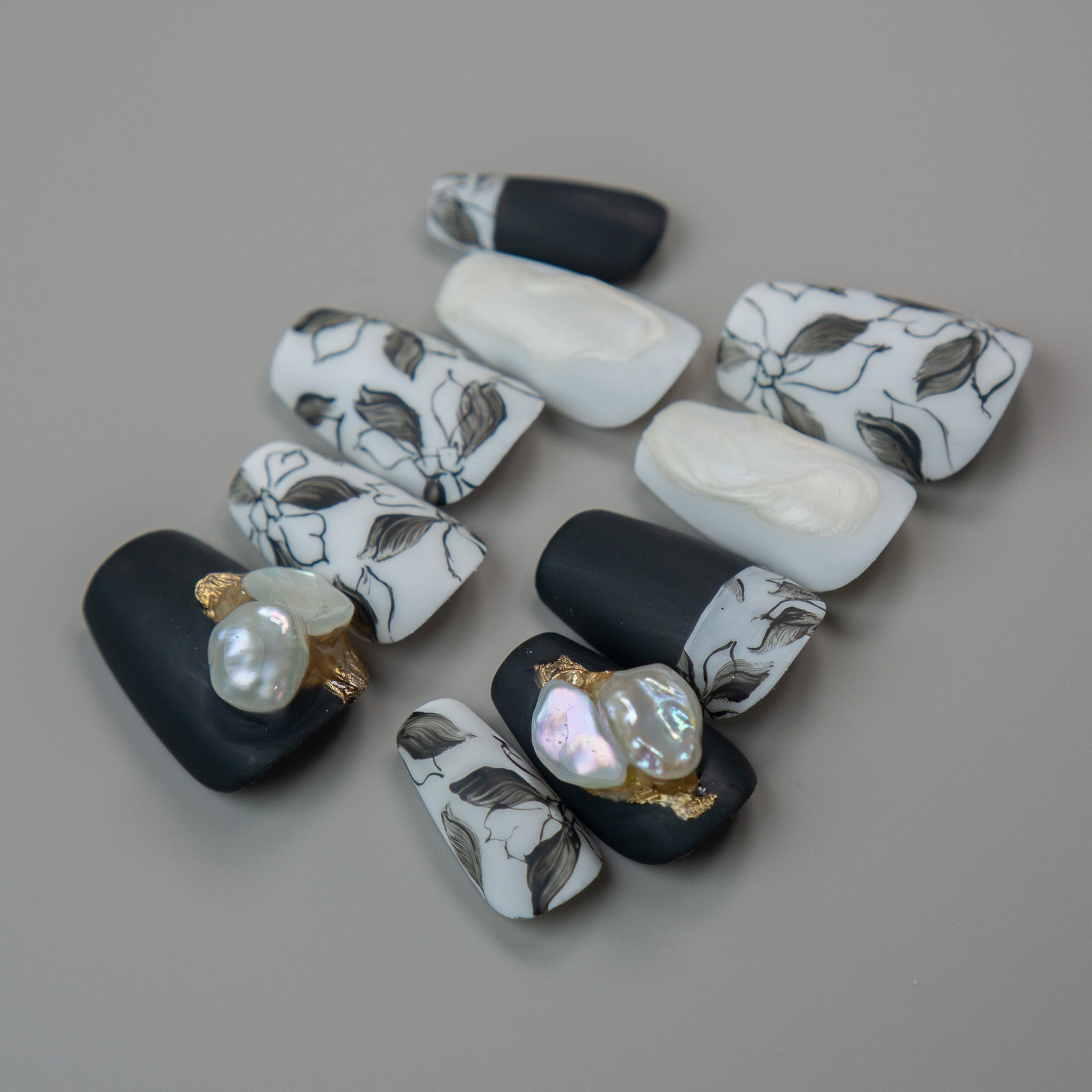 マットで仕上げた、モノトーンで洗練された花柄アート。