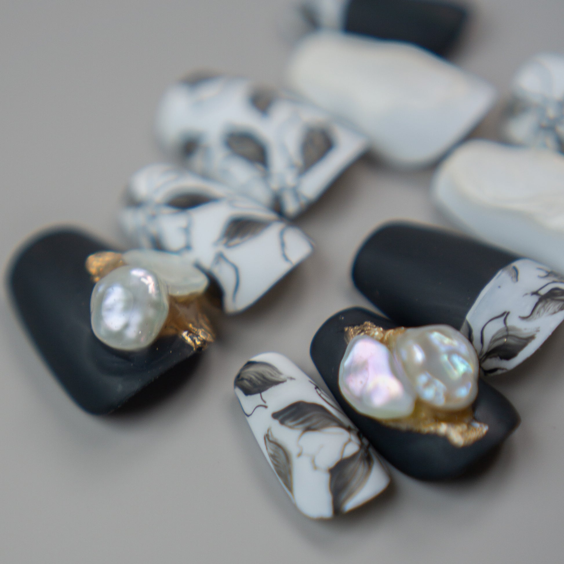 マットで仕上げた洗練された印象の中でも、2本のチップにパールを乗せて